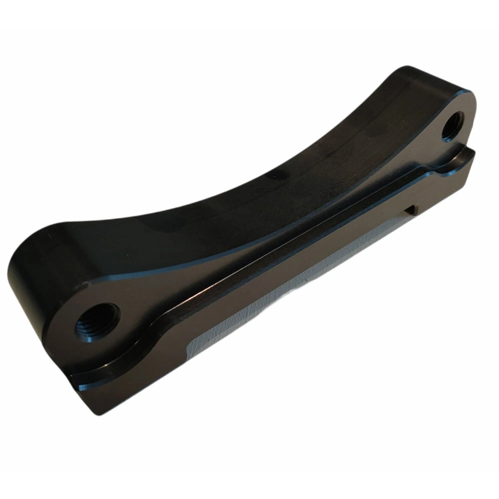 A pair of precision CNC machined 6082-T6 alloy adaptors to allow the fitting of the Renault Megane RS III Brembo caliper to the Honda Civic EP3 platform based around a 320x28mm Murano disk . Fully anodised to protect them from the harsh conditions of UK winter roads.